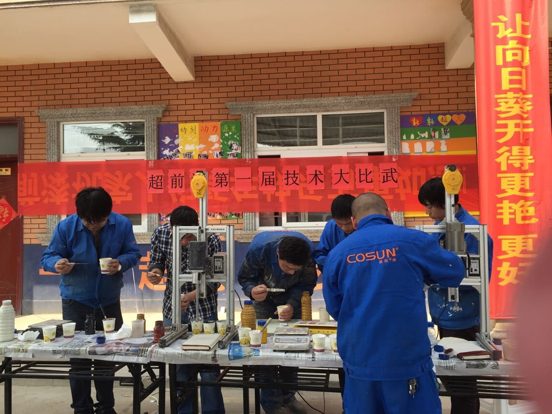 從一點開始一直到三點半才結(jié)束,幾位超前的超人們也都調(diào)配出自己滿意的外墻多彩漆樣板,交出滿意的答卷。以后,超前涂料會經(jīng)常舉行這樣的比賽活動,調(diào)動超人們的學習精神,給客戶提供更好的服務(wù),也請各位客戶多多關(guān)注我們超前http://www.liexiucu.com
